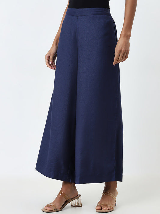 Zuba Blue Solid High-Rise Palazzos