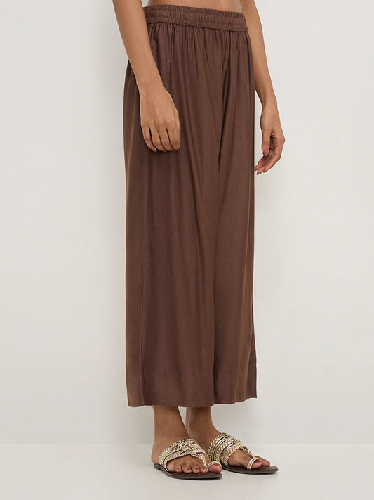 Zuba Brown Solid Mid-Rise Palazzos