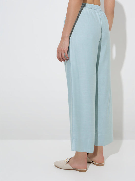 Zuba Dusty Blue Silk-Blend Ethnic Pants