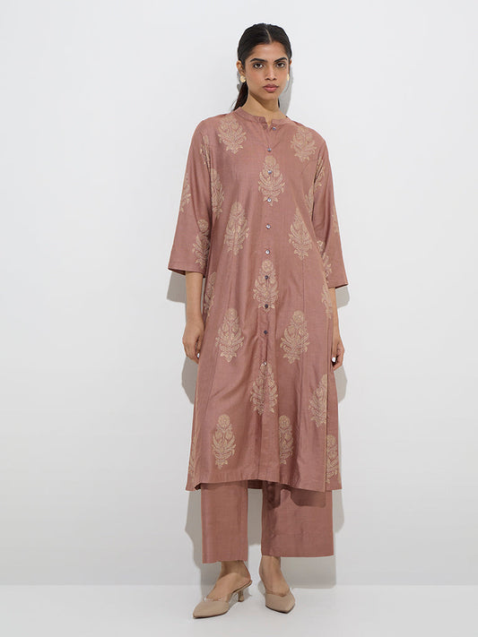 Zuba Dusty Pink Foliage Patterned A-Line Kurta