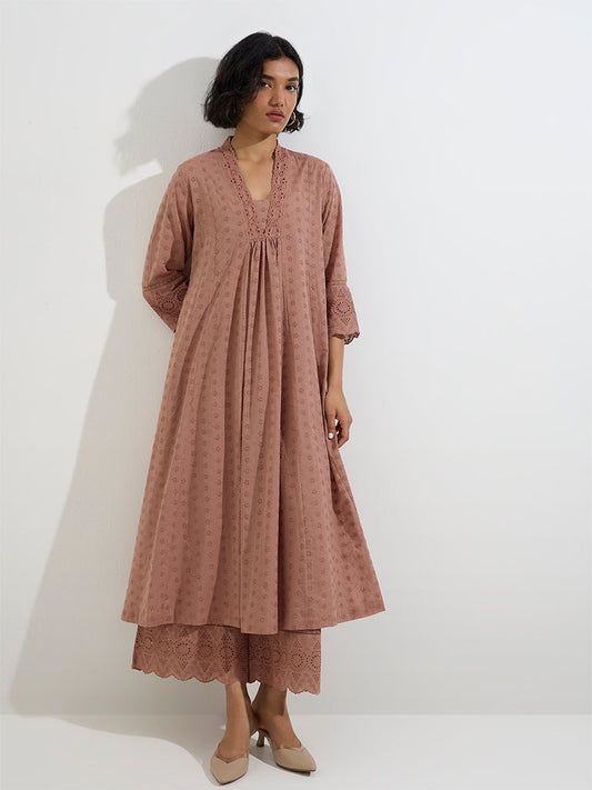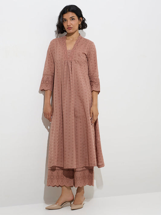 Zuba Dusty Pink Schiffli Design Cotton A-Line Kurta