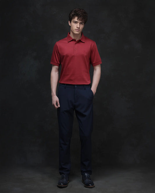 Rare Rabbit Men Ripl Red Cotton Fabric Short Sleeve Collared Neck Button Closure Plain Polo