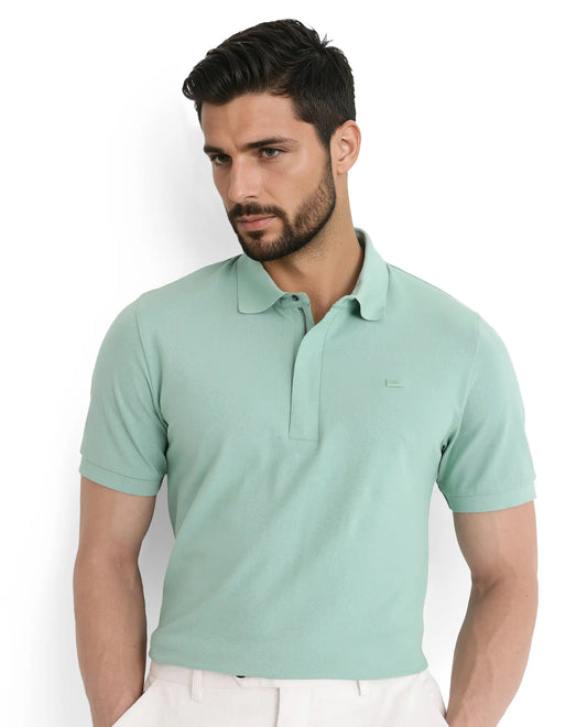 Rare Rabbit Men Zeni Dusky Green Cotton Lycra Fabric Short Sleeve Regular Collared Button Closure Plain Polo