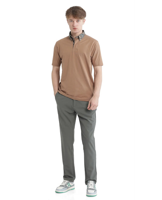 Rare Rabbit Men's Ringer 25 Dusky Beige Cotton Blend Fabric Half Sleeve Spread Collar Regular Fit Plain Polo