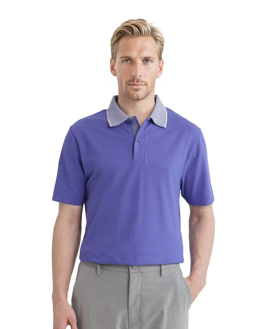 Rare Rabbit Men Abit Purple Cotton Blend Fabric Short Sleeve Jacquard Collar with Tape Detailed Placket Button Closure Plain Polo