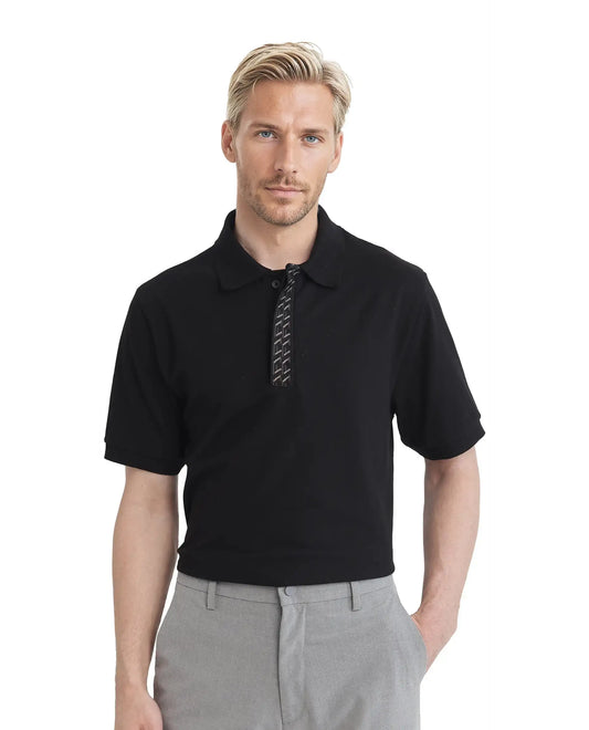 Regular price Rs. 399.00Regular priceUnit price / perRs. 2,799.00Sale price Rs. 399.00Rare Rabbit Men Arko Black Cotton Blend Fabric Short Sleeve Regular Collared with Jacquard Placket Button Closure Plain Polo T-Shirt
