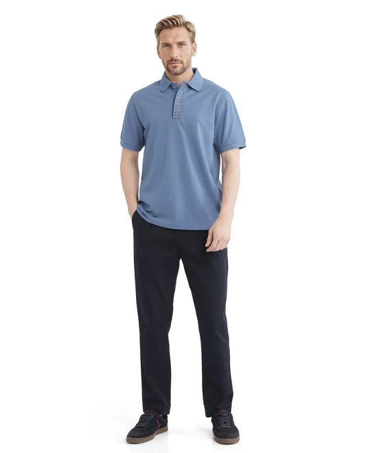 Rare Rabbit Men Arko Blue Cotton Blend Fabric Short Sleeve Regular Collared with Jacquard Placket Button Closure Plain Polo T-Shirt