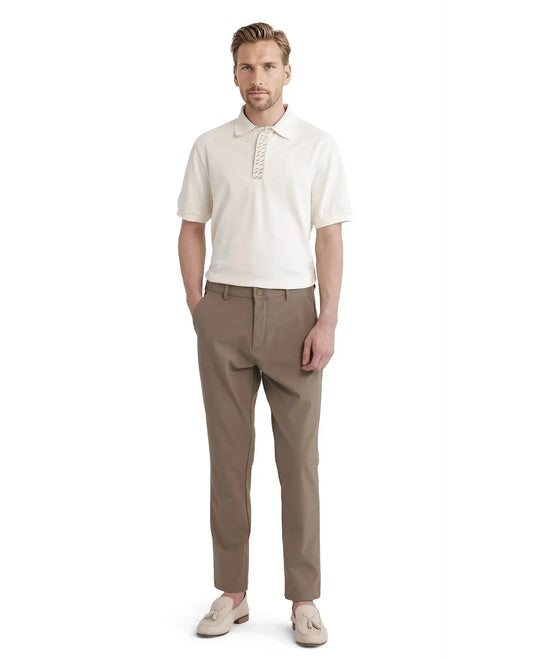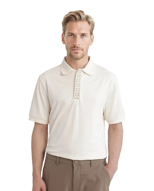 Rare Rabbit Men Arko Off White Cotton Blend Fabric Short Sleeve Regular Collared with Jacquard Placket Button Closure Plain Polo T-Shirt