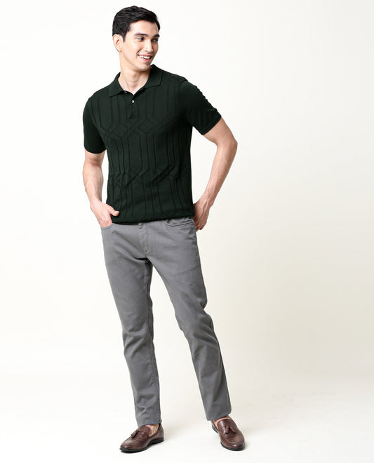 Rare Rabbit Men's Link Olive Cotton Fabric Collared Neck Flat Knit Half Sleeve Polo