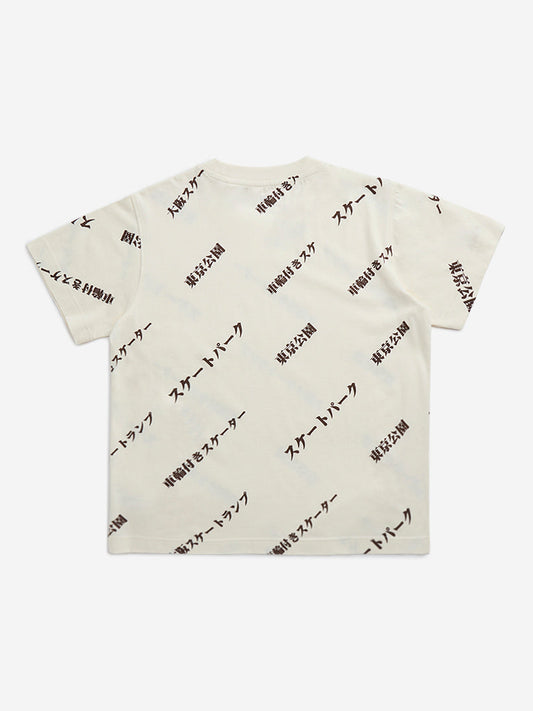 Y&F Kids Off-White Japanese Text Design Cotton T-Shirt