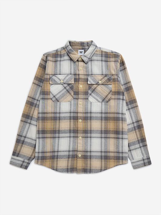 Regular price Rs. 799.00Regular priceUnit price / perRs. 0.00Sale price Rs. 799.00Y&F Kids Beige Checkered Cotton Shirt