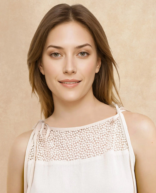 Regular price Rs. 310.00Regular priceUnit price / perRs. 1,999.00Sale price Rs. 310.00Rareism Women Terni Off White Elegant Lace Detail Top With Strap Tie-Up
