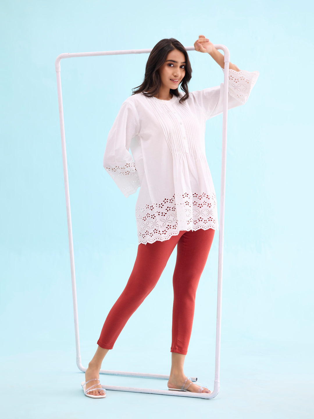 Go the ethnic way with our Solid Dark Rust Cropped Leggings. Made from Cotton & Elastane, it has a elasticised waistband, slim fit & is of 7/8th length.