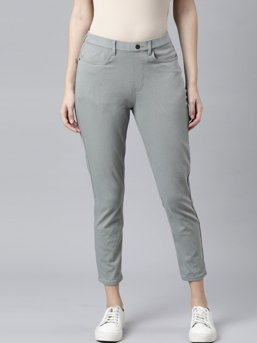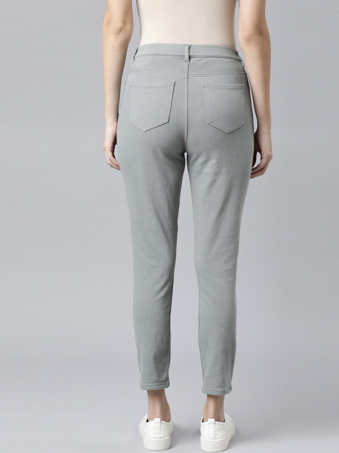 Team up the Solid Dusty Green Cropped Jeggings with a tee or a top for a perfect day or night look. Made from cotton, polyester & elastane, this super stretch pair jeggings have a button up & zip fly closures, front slant pockets, back patch pockets & is of cropped length.