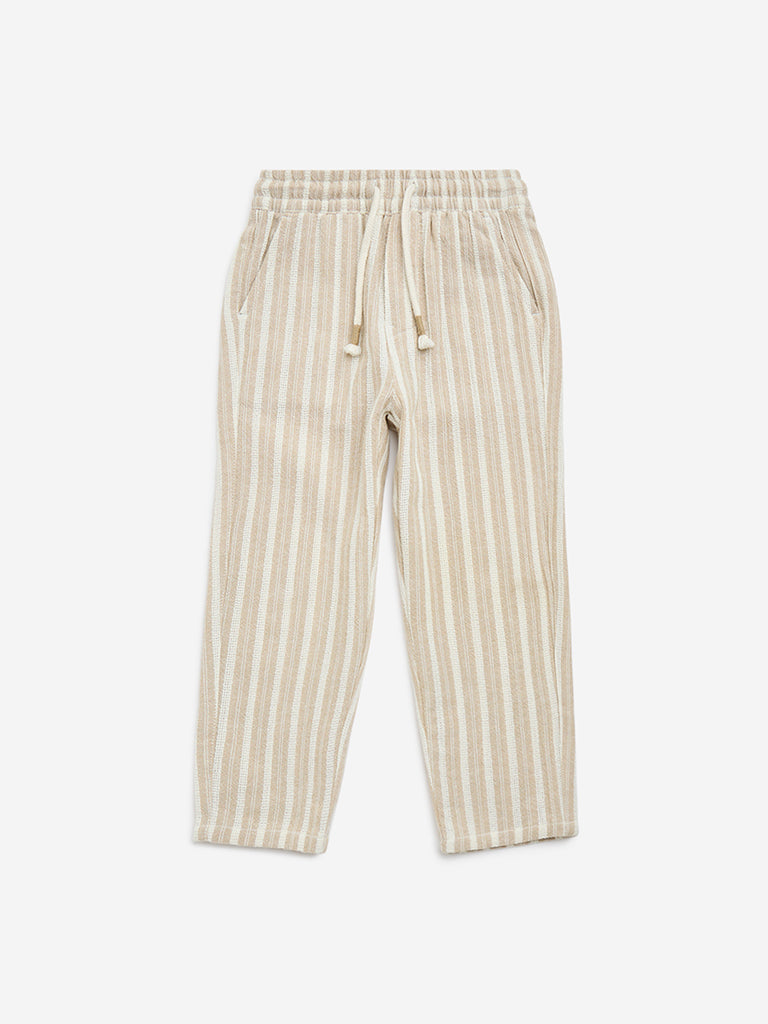 HOP Kids Beige Striped Mid-Rise Cotton Pants