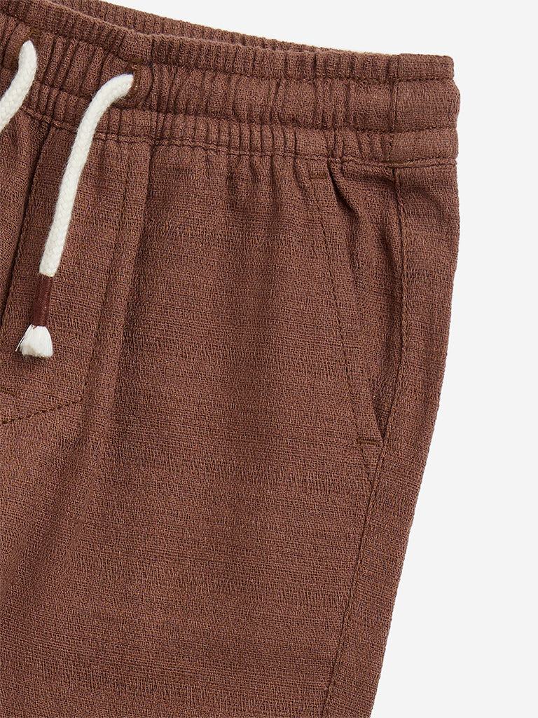 HOP Kids Brown Mid-Rise Cotton-Blend Pants