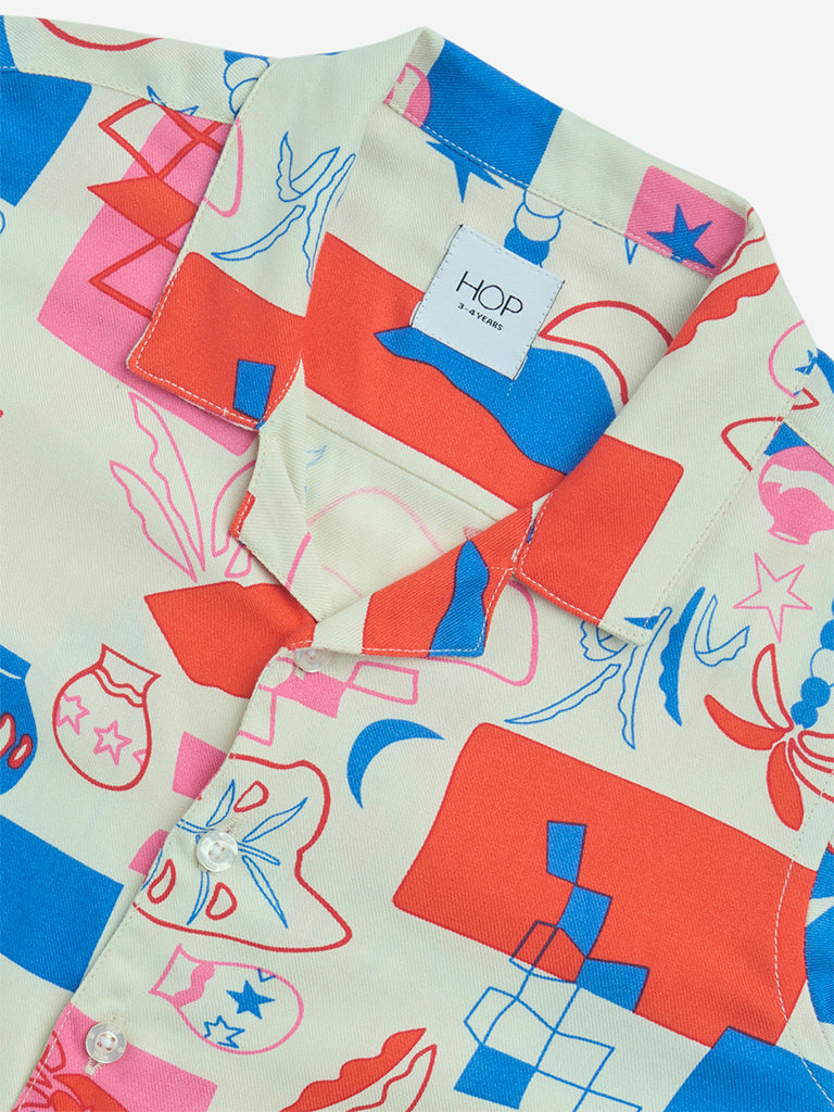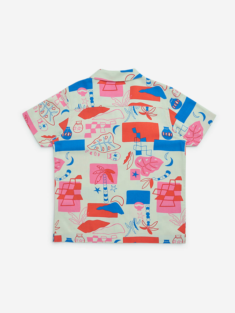 HOP Kids introduces this multicolour shirt featuring playful abstract prints and is crafted from soft, lightweight fabric for all-day comfort. It is completed with a camp collar, a button-up front and short sleeves offering a charming staple for casual dressing.