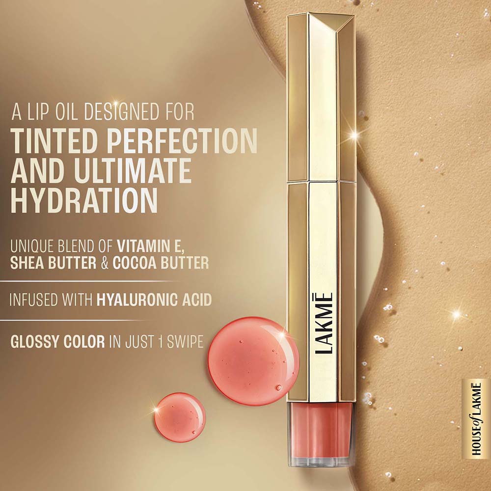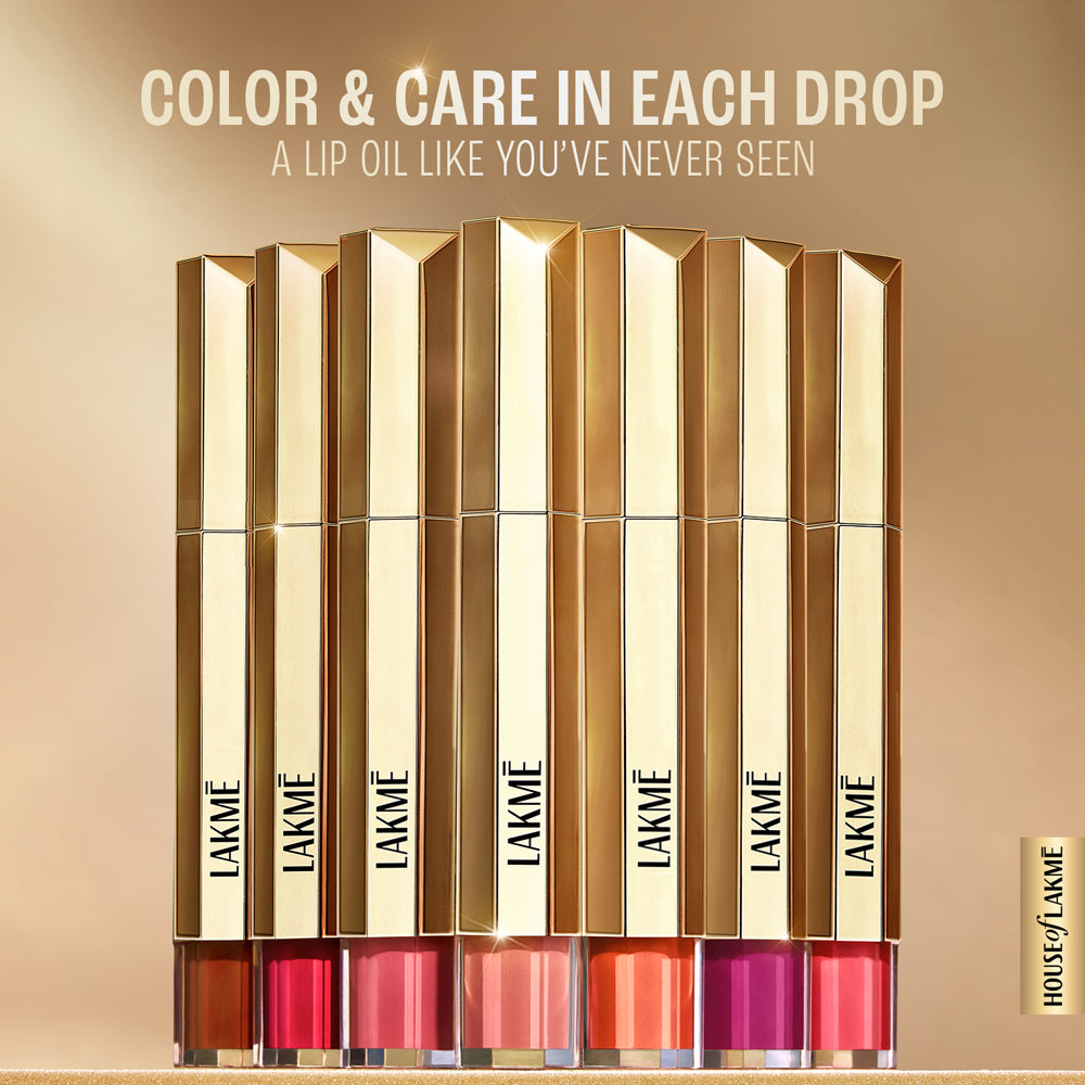Experience a new standard in pout perfection with the Lakme 9to5 Overtime Shine Tinted Lip Oil. Discover the perfect blend of rich color, a glasslike shine and deep hydration with our luxurious lip oil. Formulated with nourishing shea butter, cocoa butter & castor oil - this lip oil delivers a silky-smooth texture that moisturises and treats your lips in every stroke. The hyaluronic acid locks in moisture, ensuring your lips stay plump & hydrated. This unique blend of ingredients ensures that your lips stay moisturized, smooth, and beautifully tinted throughout the day. The lightweight, non-sticky formula glides on effortlessly, providing a glossy finish that is perfect for any occasion. Whether you’re looking for a natural everyday look or a touch of glam, this tinted lip oil is your go-to solution for achieving deeply tinted soft & healthy lips. So get drenched in color & care with 8 rich & show-stopping shades that elevate your natural beauty, providing a radiant, head-turning finish. The Lakme 9to5 Overtime Shine Tinted Lip Oil is a must-have for every woman. Whether worn alone for a stunning shine or over your favorite lipstick, our lip oil redefines lip care luxury in every drop while giving long lasting care for luscious lips.