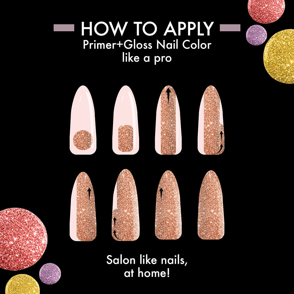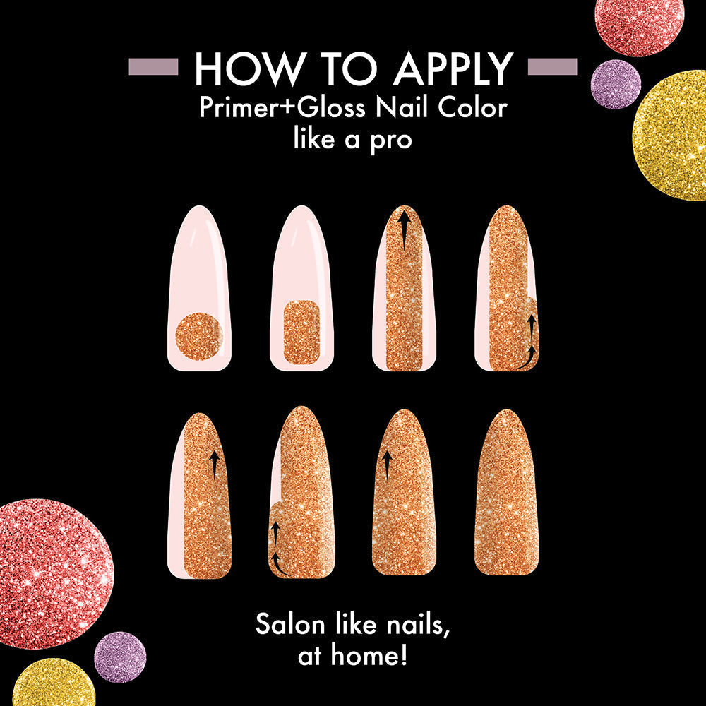Unveil a spectrum of colors curated for daily wear; these shades are your essential companions. Priced at an economical Rs.180/-, the Lakmé Glitterati Collection Shine Nail Color range pledges an everyday-perfect gleam for your nails. To achieve glossy, stunning nails, start by applying a single coat of your preferred shade. Allow brief intervals between coats for a seamless, swift finish. Lock in your nail's brilliance with the Topcoat, ensuring a glossy, chip-resistant texture that provides a smooth, enduring gleam to any nail color. Now, you're ready to flaunt those everyday-perfect glossy nails. Whether it's a brunch party or a dinner party, we've got you covered with just the right amount of glitter!"