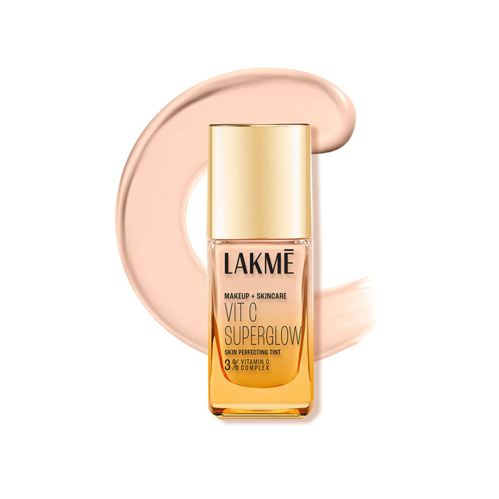 "New Lakme Vit C Superglow Skin Perfecting Tint isn't just about makeup, it’s a skincare powerhouse. Supercharged with 3% active Vitamin C, it transforms your skin from within to give you an instant, radiant look and hydrated, smoother, brighter skin overtime.