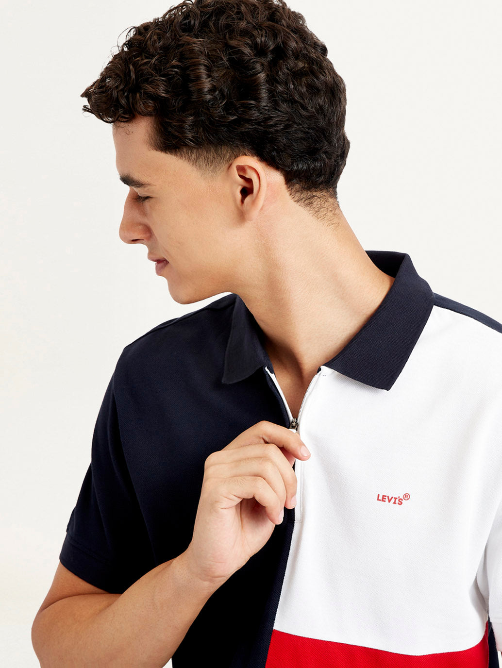Switch up your everyday wardrobe with this trending t-shirt from Levi's. Ideal to wear for all seasons, this versatile t-shirt features a polo collar and half sleeves. Comfortable essential with a colorblock pattern.