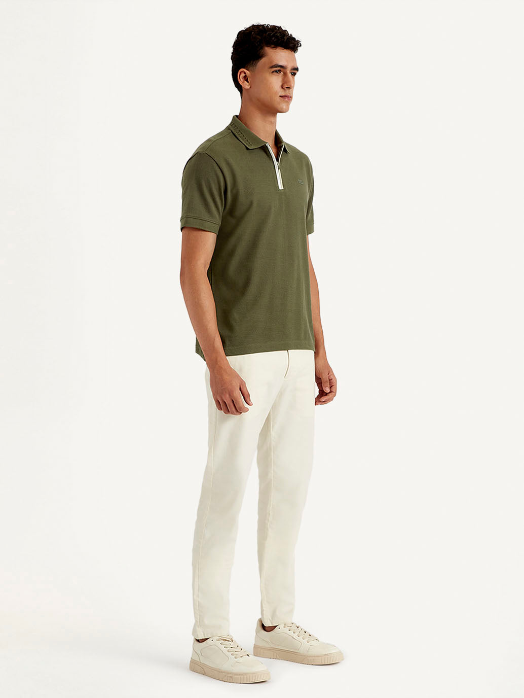 Step up your game and grab this latest t-shirt by Levi's for your wardrobe rotation. Ideal to wear with your jeans, shorts, or even your chinos, this green cotton t-shirt is designed to be versatile. Standard polo collar and half sleeves in slim fit.