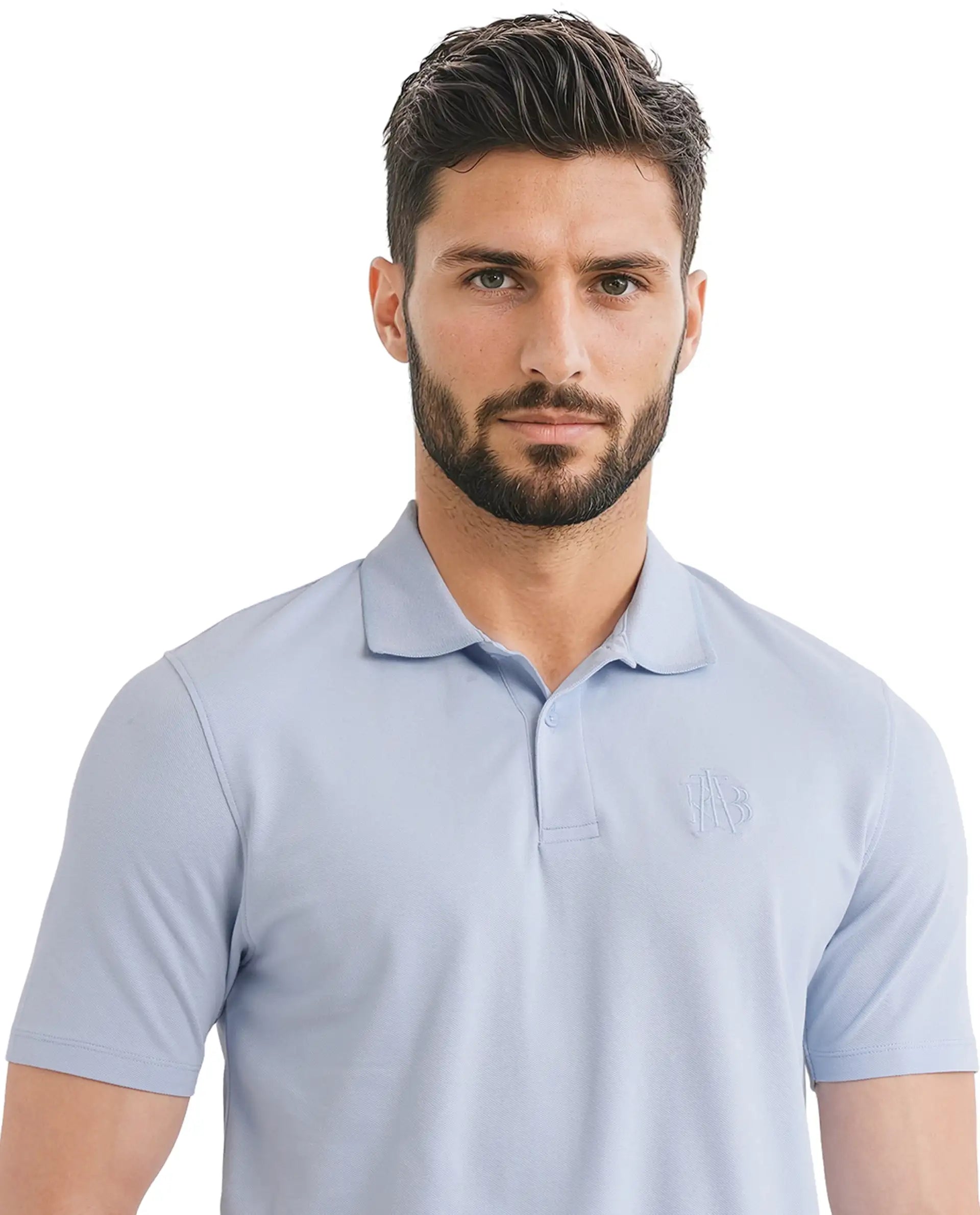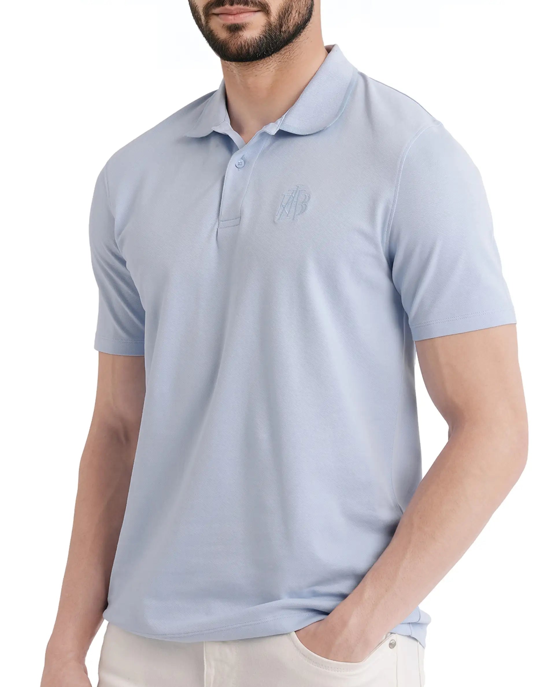Rare Rabbit Men Aroe Pastel Blue Short Sleeve Collared Neck Plain Polo