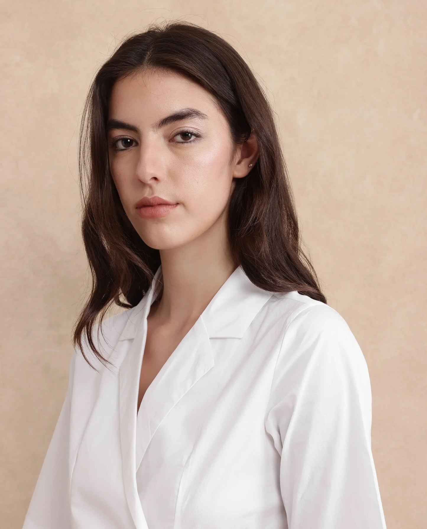 - The model (Chest-34, Waist-28, Hips-38, Height-178 cms) is wearing a size XS.