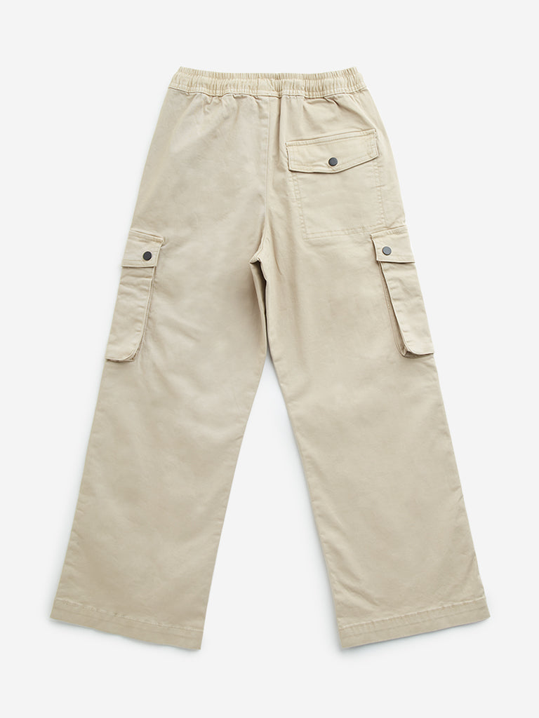 Y&F Kids Beige Cargo-Style Mid-Rise Cotton-Blend Pants
