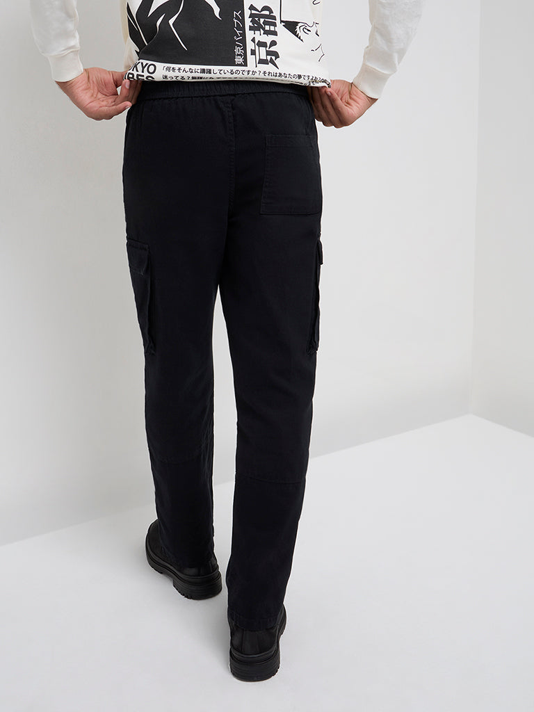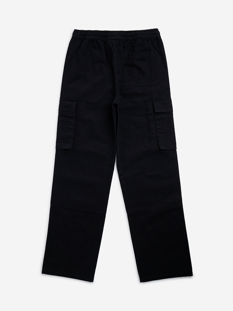 Y&F Kids Black Cargo-Style Mid-Rise Cotton Trousers