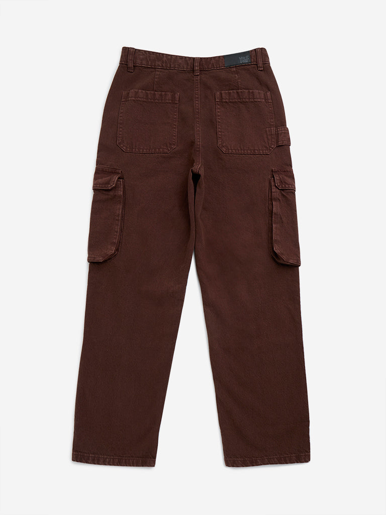 Y&F Kids Brown Cargo-Style Mid-Rise Relaxed-Fit Jeans