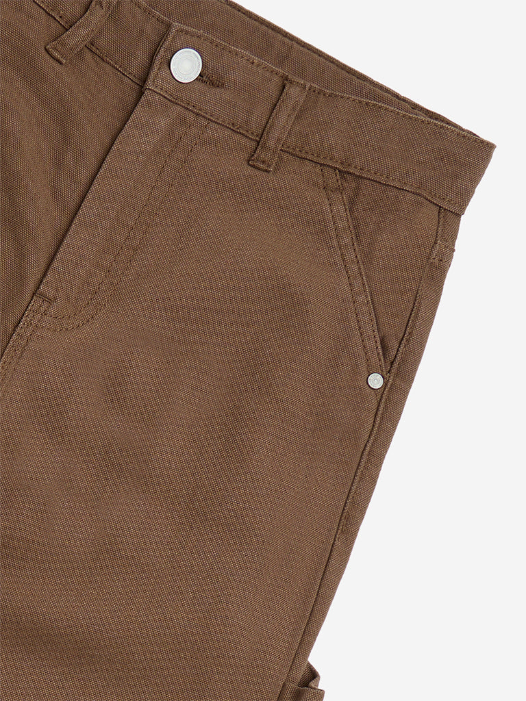 Y&F Kids Brown Solid Mid-Rise Cotton Pants
