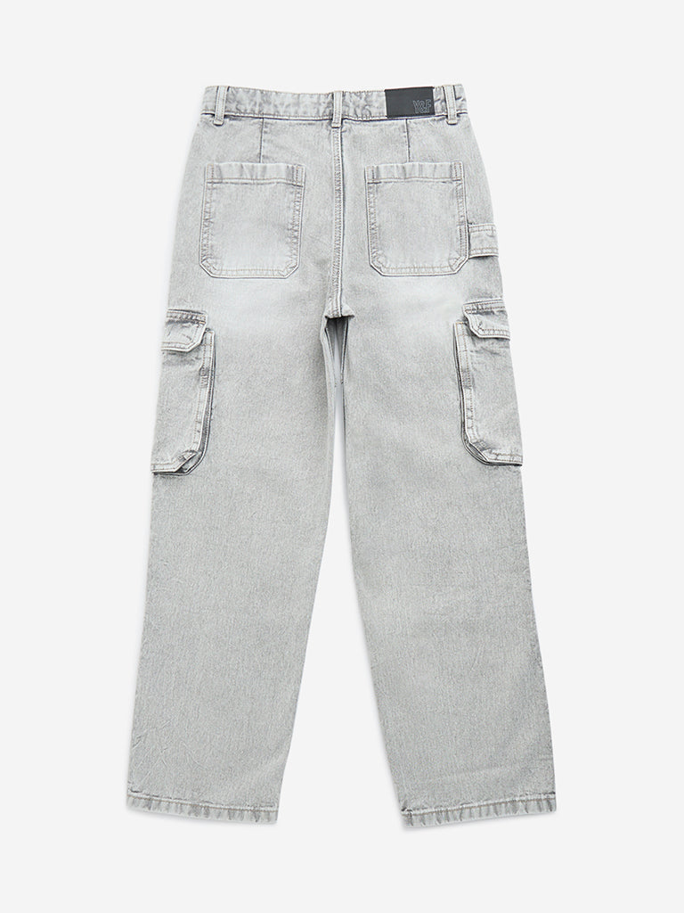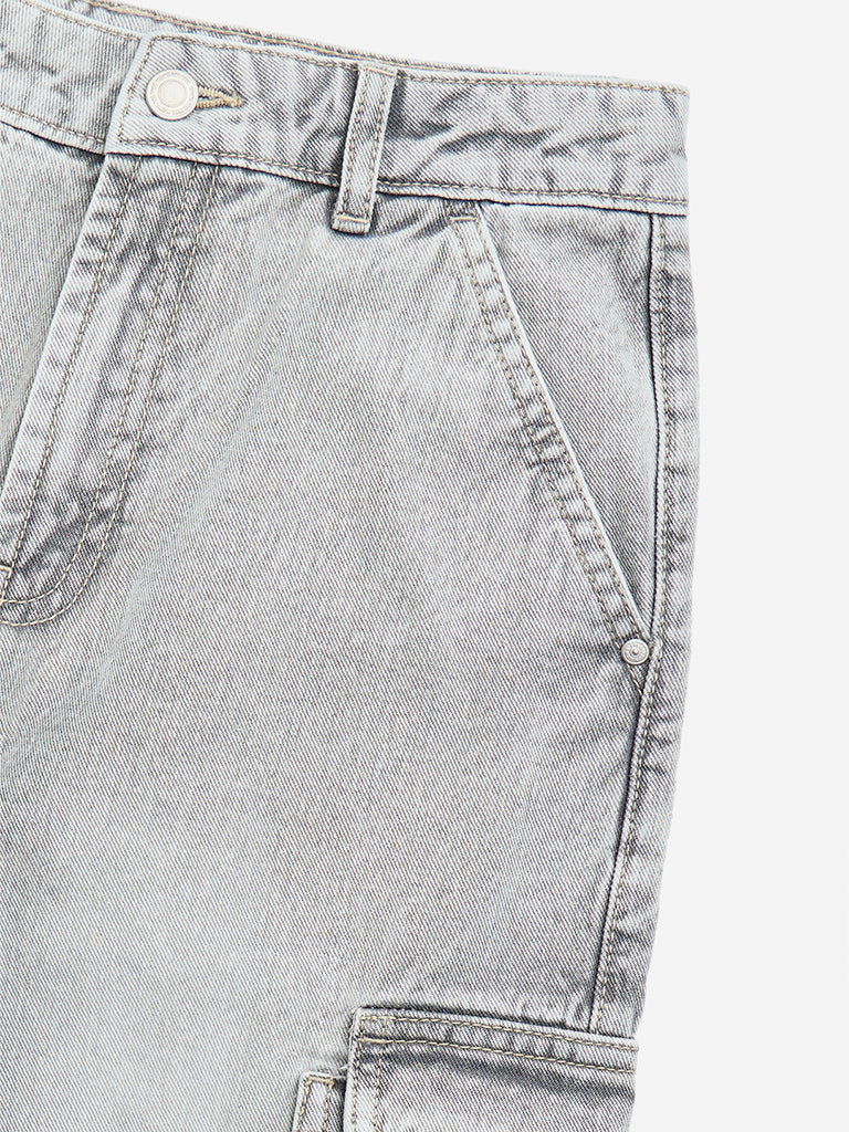 Y&F Kids Grey Cargo-Style Relaxed-Fit Mid-Rise Jeans