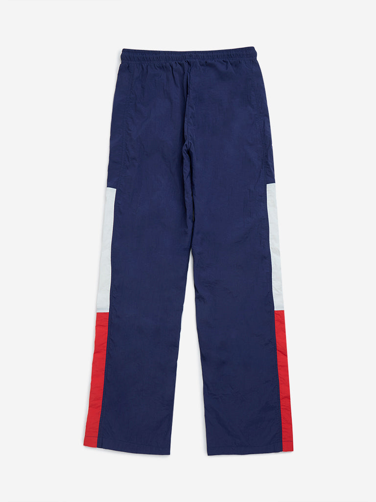 These navy pants by Y&F Kids are designed with red and white side panels. Made with soft and breathable fabric, the mid-rise bottomwear carries a smooth elastic waistband, adjustable drawstrings and side pockets.