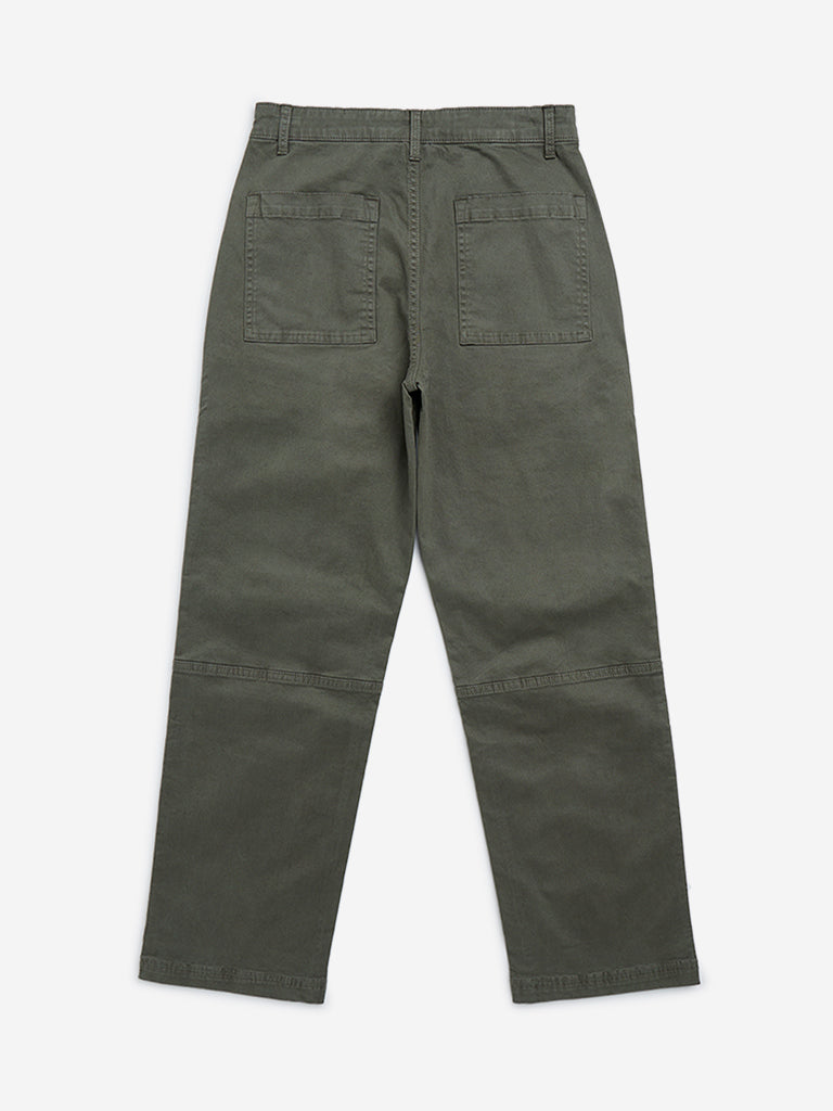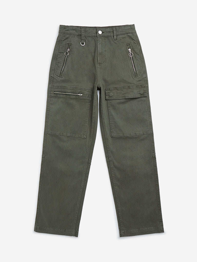 Y&F Kids Olive Cargo-Style Mid-Rise Cotton-Blend Trousers
