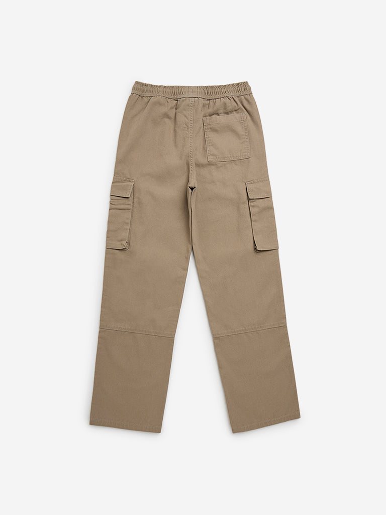 Y&F Kids Taupe Cargo-Style Mid-Rise Cotton Trousers