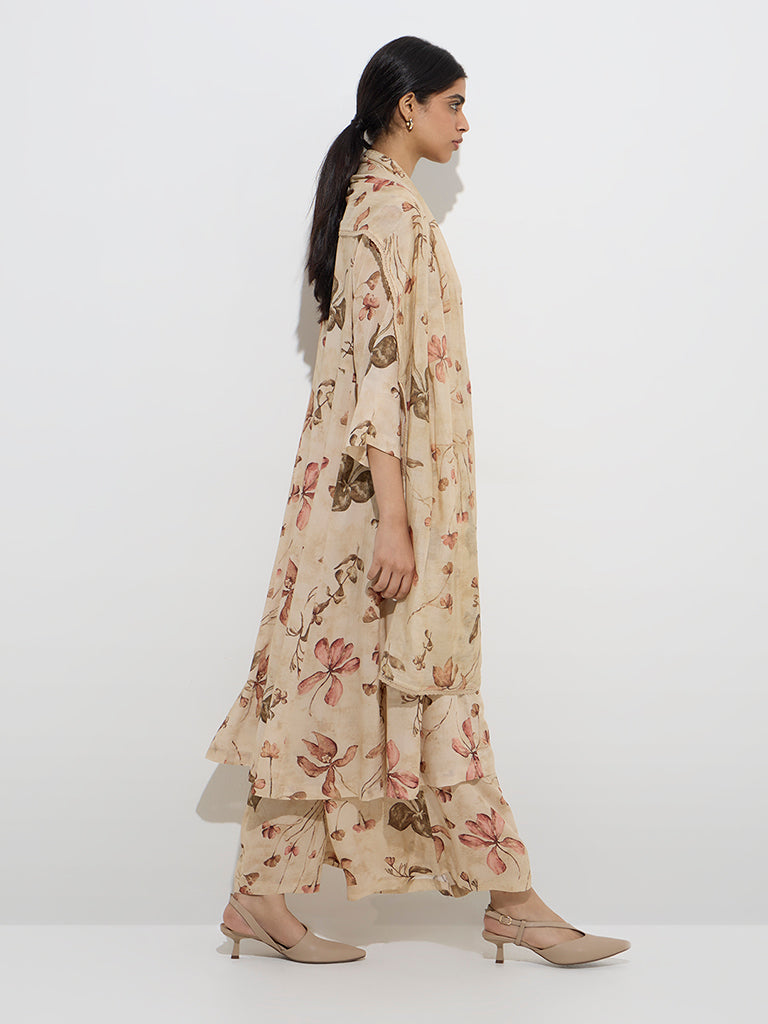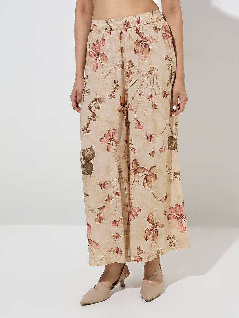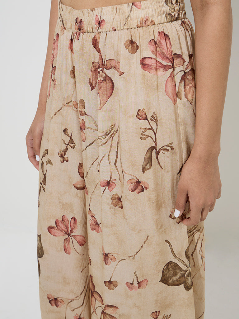 These beige palazzos from Zuba are constructed from an ultra-lightweight fabric for all-day comfort. Exhibiting botanical prints throughout, they offer an elasticated waistband with attached drawstrings for an adjustable fit.