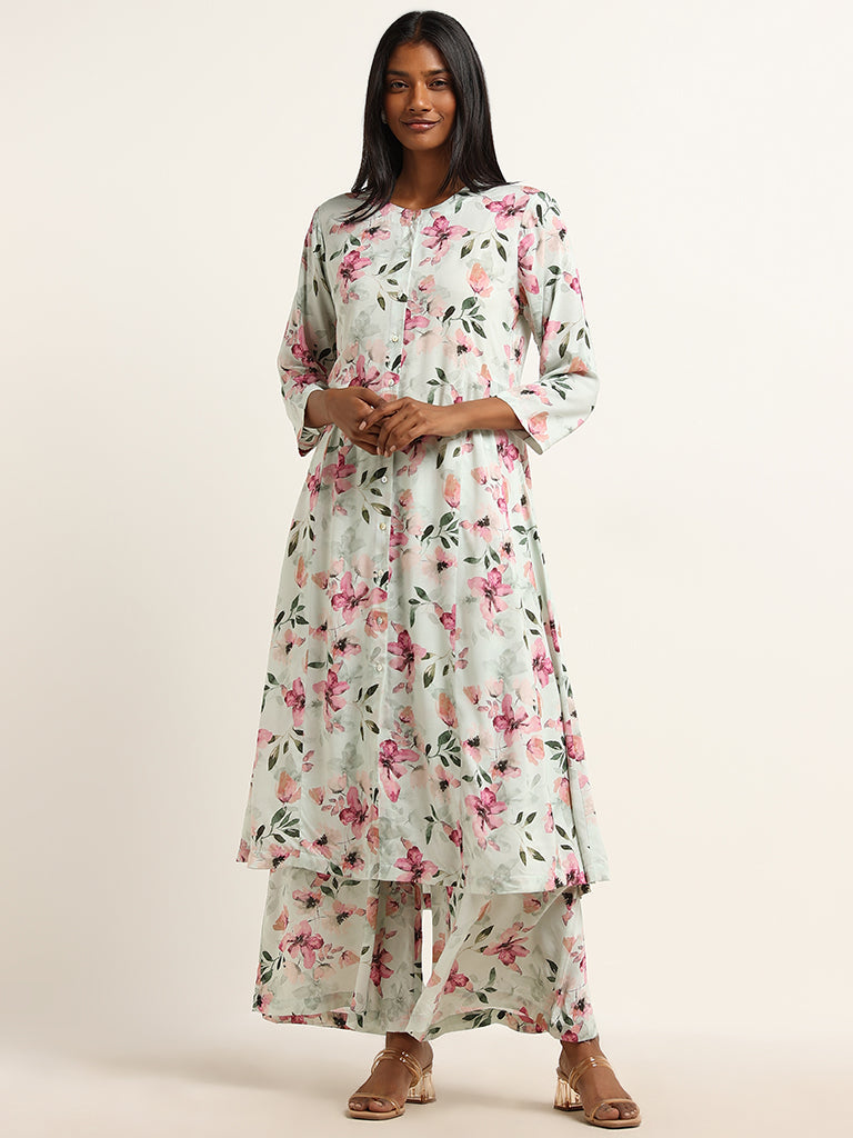 Decorated with vibrant floral prints, these multicolour palazzos from Zuba come fitted with an elasticated waist for an adjustable fit. Pair these bottoms with the matching kurta from the brand (sold separately).